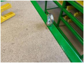 Bild 8.4 Der Luftschlauch Steuergerät zur Drehvorrichtung wird bei den Gewindestangen deponiert