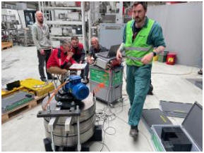 Bild 12.1 ADP MEMV Gerät aufgebaut an grosser Stahlplatte, Masse 200x2300x14000