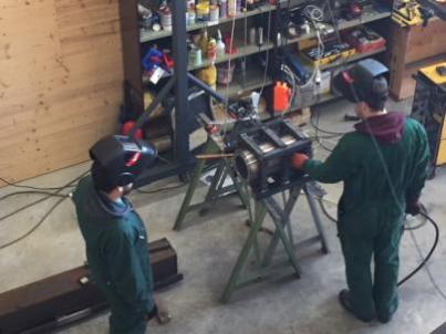 Jim und Sven beim Schweissen, das geht fast nicht alleine.