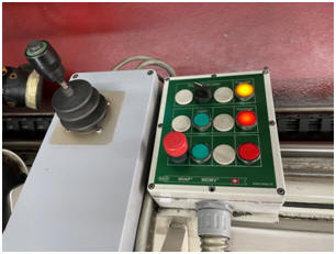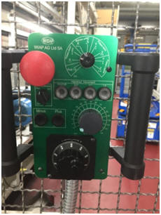 Bild 6C: Der Operateur war mit der Schalteranordnung der alten Lösung zufrieden und wollte keine Neuheiten. Darum haben wir viel der alten Knöpfe übernommen, obwohl es bei der neuen Steuerung viel über die CNC hätte gehen können. Doch im Hinblick der Hand-, Halbautomat und CNC Lösung haben wir es nach Operateurwunsch gewählt. |