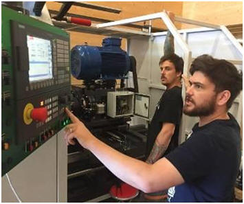 Bild 5A: CNC Programme erstellen und PLC, alles von den Jungen ist ja tip top. Sven hat bei dem Projekt praktisch alles elektrisch gemacht, PLC Verheiratung der CNC mit der externen SPS war gar keine einfache Sache, da die CNC nicht so viele Eingänge und Ausgänge hat, mussten wir BCD codierte Sprache anwenden zwischen CNC und SPS