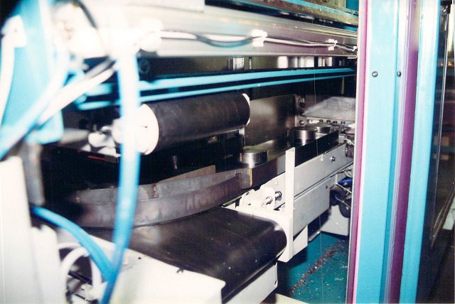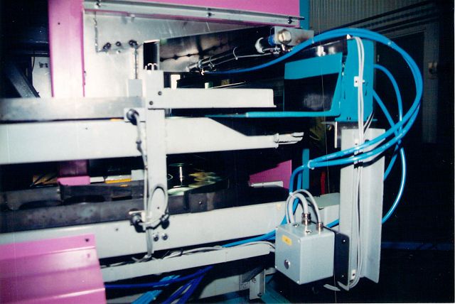 Bild 4: Wenn ein Werkstück durch Fliesspäne im Arbeitsraum hängen bleibt, wird mittels Photozellen überwacht, dass, wenn kein Werkstück aus der Maschine kommt, die Maschine Alarm gibt und stehen bleibt.
