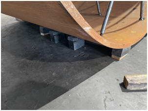 Bild 13.G – Leichte Hohlwalze wird auf 4 Gummi gestellt, welche mit Keilen noch unterlegt sind