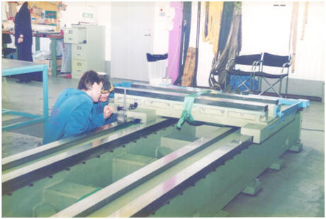 Bild 5.1 Wiap Monteure stellen das Spiel der Z Achse ein. Sehr wichtig: der Winkel zur X Achse